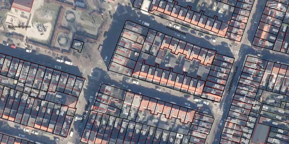 Gebruik de zoekbalk of klik op een perceel voor informatie over de adressen binnen dit perceel.