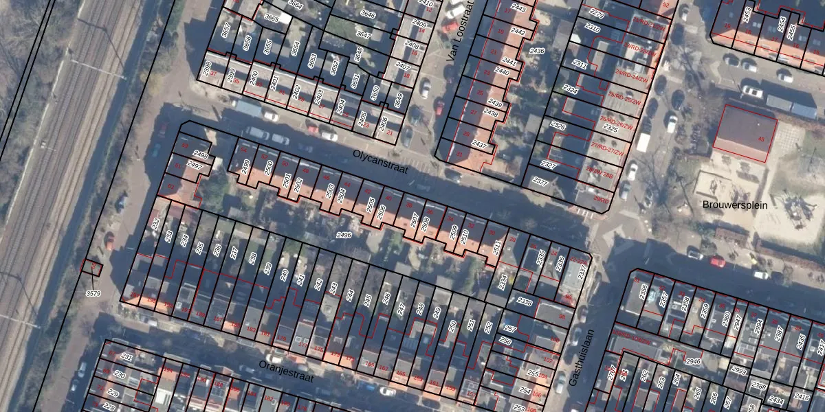 Gebruik de zoekbalk of klik op een perceel voor informatie over de adressen binnen dit perceel.