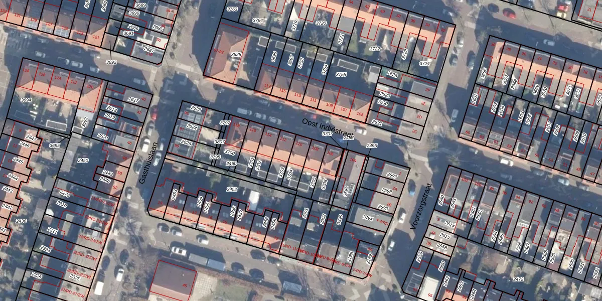 Oost Indiëstraat 110 is gelegen op kadastraal perceel HLM01H3704. Deze kadastrale aanduiding is uniek en wordt gebruikt door het Kadaster om eigendomsrechten en andere zakelijke rechten vast te leggen. Het perceel maakt onderdeel uit van de kadastrale gemeente Haarlem.