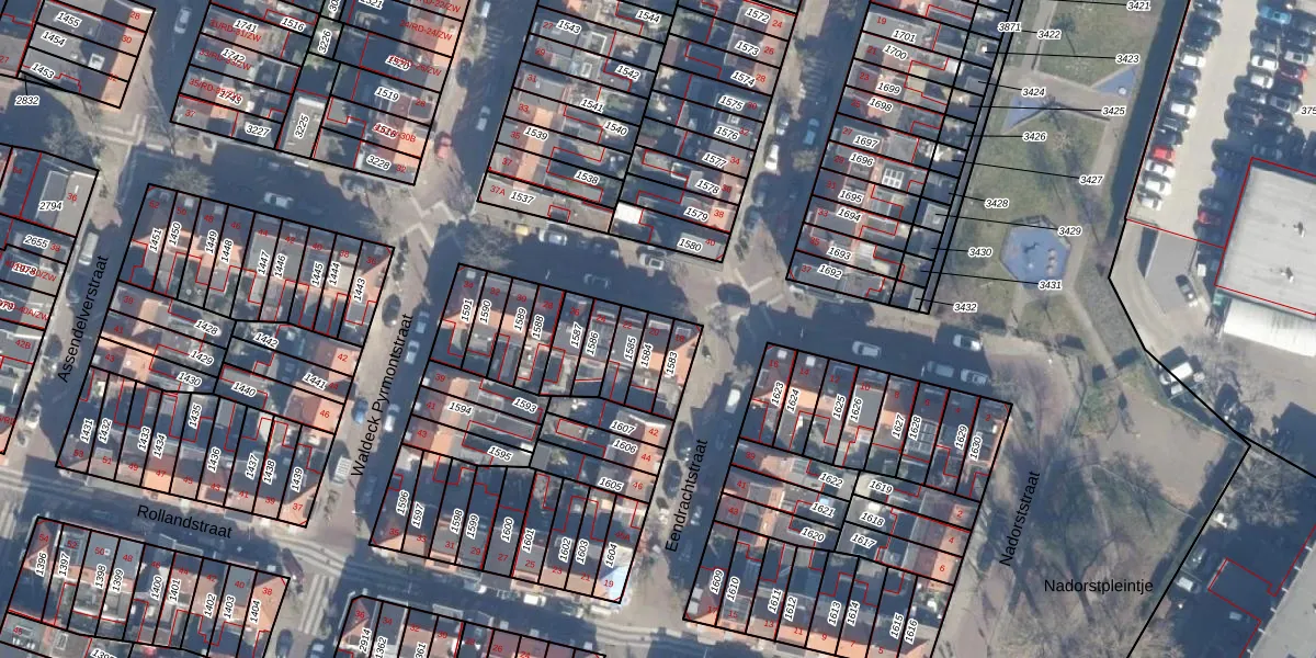 Het perceel waarop Oost Indiëstraat 20 staat heeft een oppervlakte van 63 m². Dit is een klein perceel. De perceeloppervlakte wordt geregistreerd door het Kadaster. Gedetailleerde informatie over de maten van dit perceel kunt u vinden in het rapport Kadastrale kaart met maatvoering van Oost Indiëstraat 20.