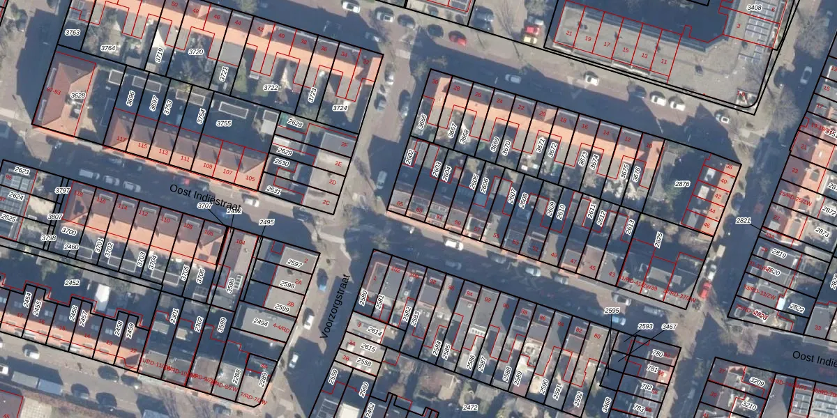 Het perceel waarop Oost Indiëstraat 63 staat heeft een oppervlakte van 88 m². Dit is een klein perceel. De perceeloppervlakte wordt geregistreerd door het Kadaster. Gedetailleerde informatie over de maten van dit perceel kunt u vinden in het rapport Kadastrale kaart met maatvoering van Oost Indiëstraat 63.