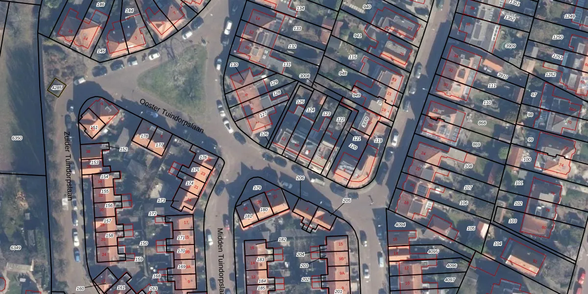 Ooster Tuindorpslaan 10 is gelegen op kadastraal perceel HLM02T124. Deze kadastrale aanduiding is uniek en wordt gebruikt door het Kadaster om eigendomsrechten en andere zakelijke rechten vast te leggen. Het perceel maakt onderdeel uit van de kadastrale gemeente Haarlem.