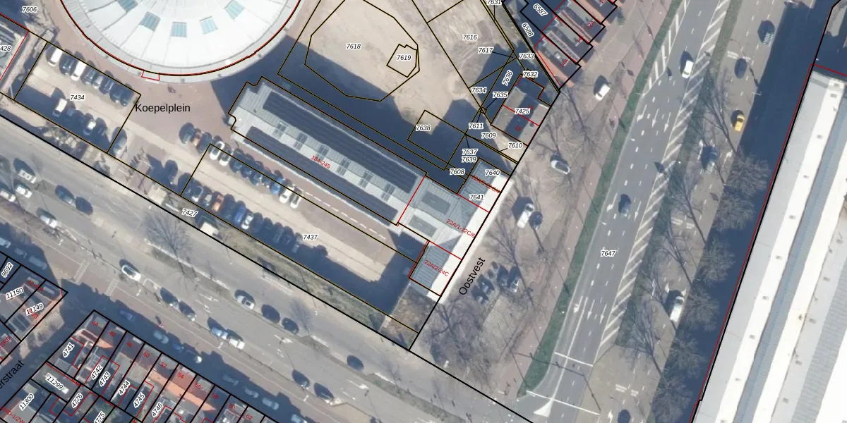 Het perceel waarop Oostvest 22-A-3 staat heeft een oppervlakte van 1033 m². Dit is een zeer groot perceel. De perceeloppervlakte wordt geregistreerd door het Kadaster. Gedetailleerde informatie over de maten van dit perceel kunt u vinden in het rapport Kadastrale kaart met maatvoering van Oostvest 22-A-3.