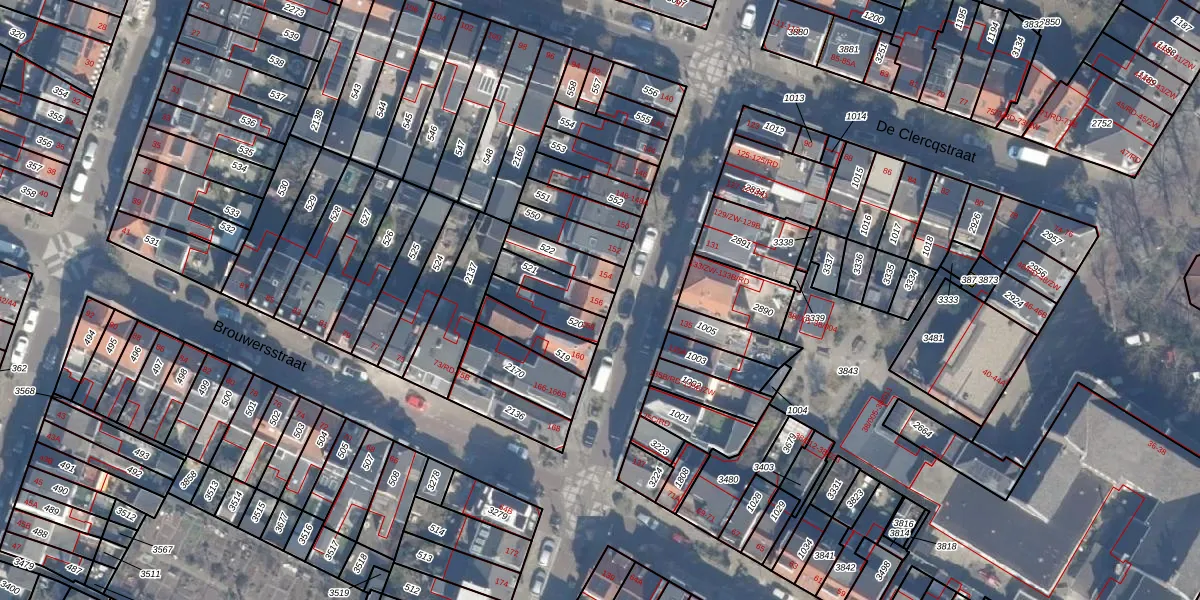 Gebruik de zoekbalk of klik op een perceel voor informatie over de adressen binnen dit perceel.