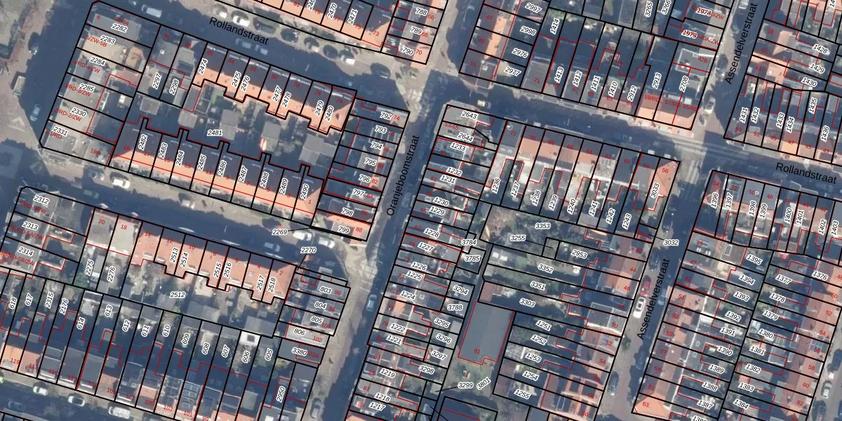 Het perceel waarop Oranjeboomstraat 65 staat heeft een oppervlakte van 57 m². Dit is een klein perceel. De perceeloppervlakte wordt geregistreerd door het Kadaster. Gedetailleerde informatie over de maten van dit perceel kunt u vinden in het rapport Kadastrale kaart met maatvoering van Oranjeboomstraat 65.