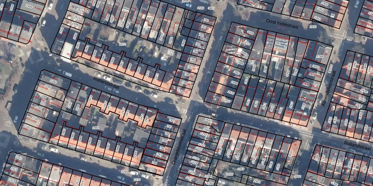 Gebruik de zoekbalk of klik op een perceel voor informatie over de adressen binnen dit perceel.