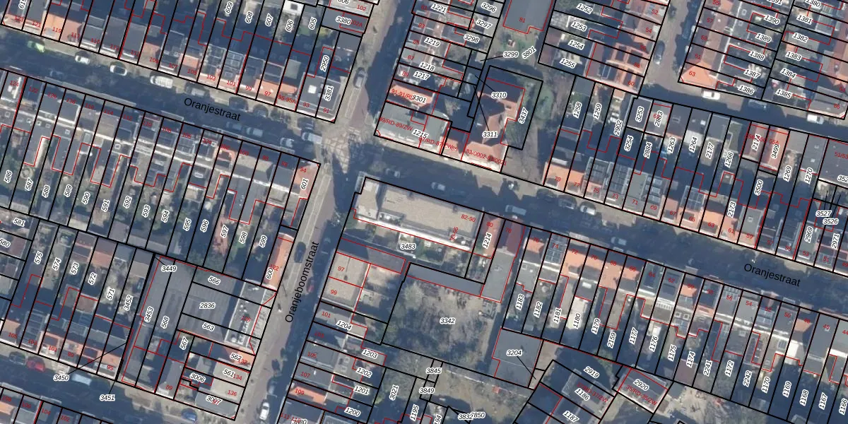 Het perceel waarop Oranjeboomstraat 95 staat heeft een oppervlakte van 740 m². Dit is een groot perceel. De perceeloppervlakte wordt geregistreerd door het Kadaster. Gedetailleerde informatie over de maten van dit perceel kunt u vinden in het rapport Kadastrale kaart met maatvoering van Oranjeboomstraat 95.