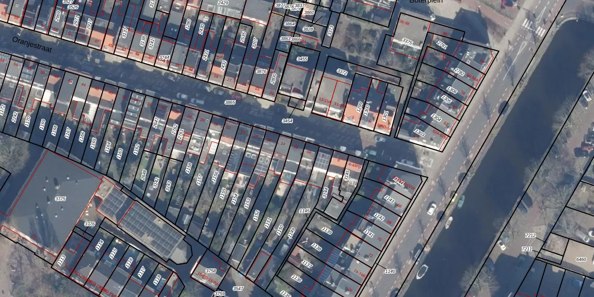 Het perceel waarop Oranjestraat 12 staat heeft een oppervlakte van 219 m². Dit is een middelgroot perceel. De perceeloppervlakte wordt geregistreerd door het Kadaster. Gedetailleerde informatie over de maten van dit perceel kunt u vinden in het rapport Kadastrale kaart met maatvoering van Oranjestraat 12.
