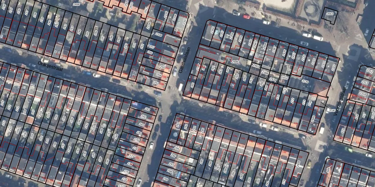 Het perceel waarop Oranjestraat 155 staat heeft een oppervlakte van 53 m². Dit is een klein perceel. De perceeloppervlakte wordt geregistreerd door het Kadaster. Gedetailleerde informatie over de maten van dit perceel kunt u vinden in het rapport Kadastrale kaart met maatvoering van Oranjestraat 155.