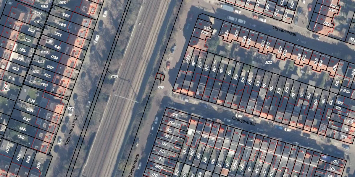 Het perceel waarop Oranjestraat 197 staat heeft een oppervlakte van 102 m². Dit is een middelgroot perceel. De perceeloppervlakte wordt geregistreerd door het Kadaster. Gedetailleerde informatie over de maten van dit perceel kunt u vinden in het rapport Kadastrale kaart met maatvoering van Oranjestraat 197.
