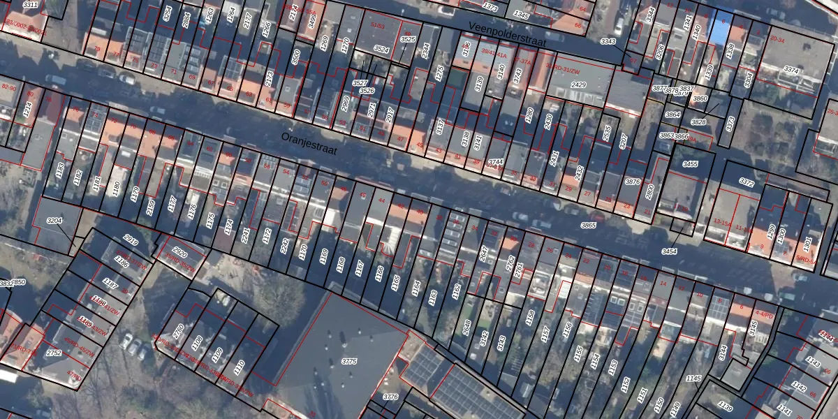 Gebruik de zoekbalk of klik op een perceel voor informatie over de adressen binnen dit perceel.