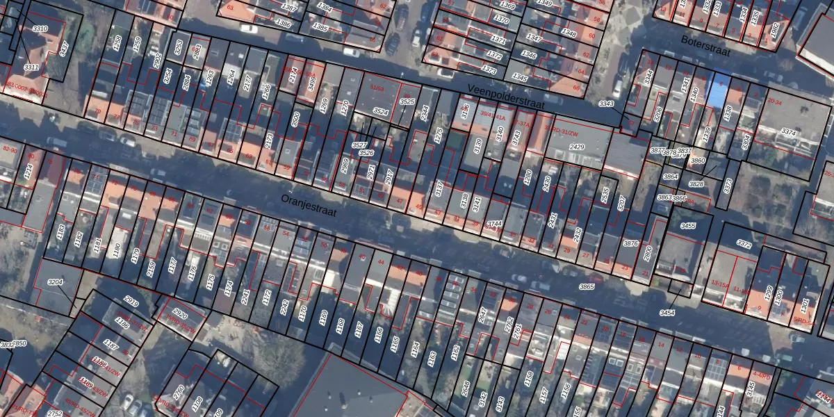 Gebruik de zoekbalk of klik op een perceel voor informatie over de adressen binnen dit perceel.