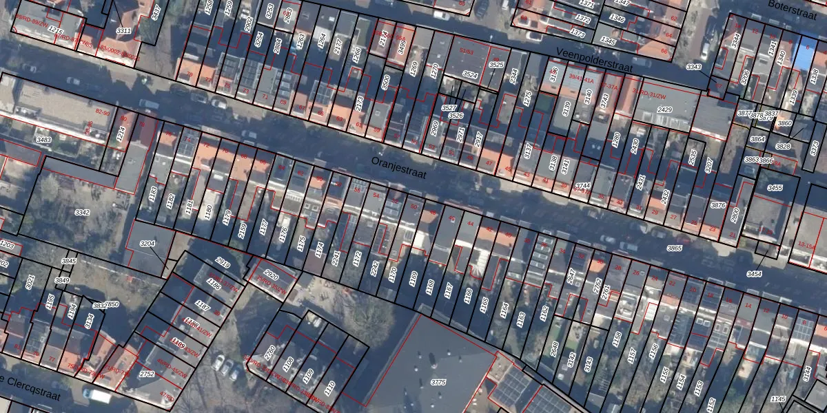 Het perceel waarop Oranjestraat 50 staat heeft een oppervlakte van 116 m². Dit is een middelgroot perceel. De perceeloppervlakte wordt geregistreerd door het Kadaster. Gedetailleerde informatie over de maten van dit perceel kunt u vinden in het rapport Kadastrale kaart met maatvoering van Oranjestraat 50.