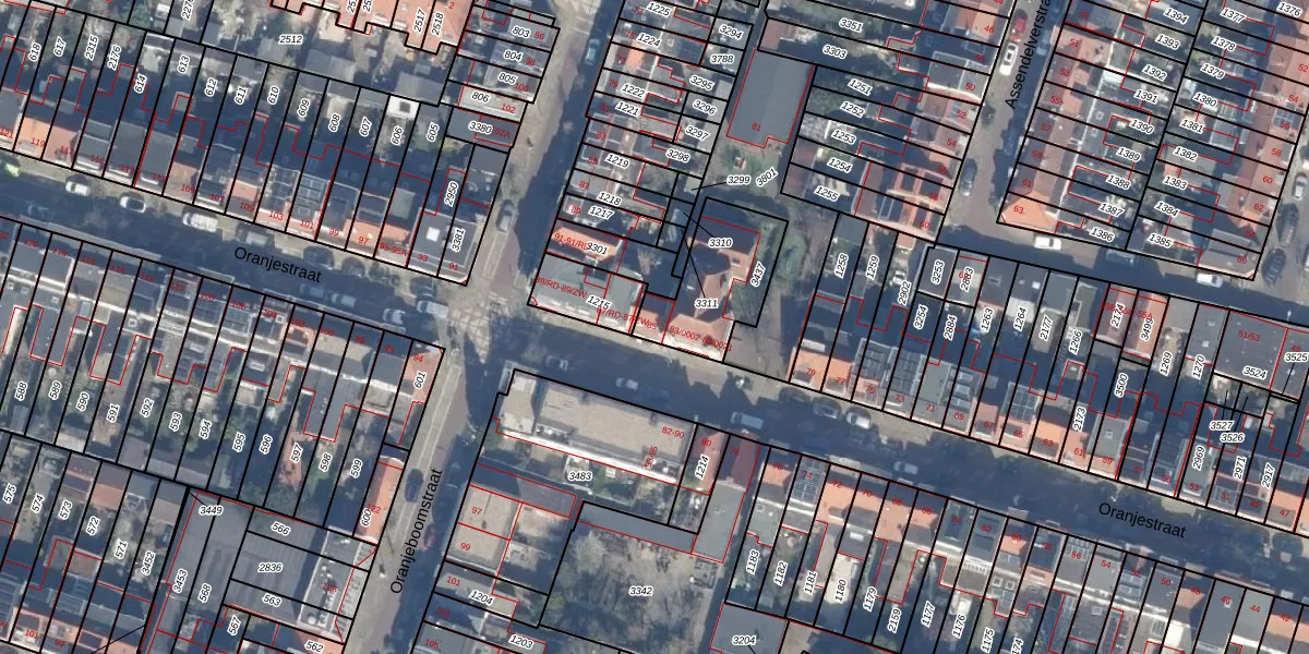 Het perceel waarop Oranjestraat 85 staat heeft een oppervlakte van 318 m². Dit is een groot perceel. De perceeloppervlakte wordt geregistreerd door het Kadaster. Gedetailleerde informatie over de maten van dit perceel kunt u vinden in het rapport Kadastrale kaart met maatvoering van Oranjestraat 85.