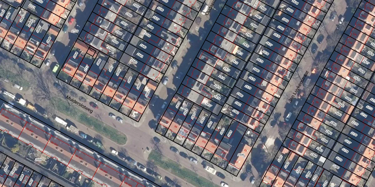 Gebruik de zoekbalk of klik op een perceel voor informatie over de adressen binnen dit perceel.