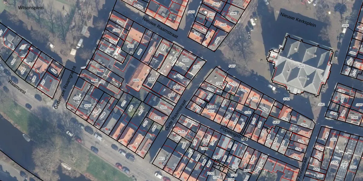 Het perceel waarop Oude Raamstraat 4 staat heeft een oppervlakte van 81 m². Dit is een klein perceel. De perceeloppervlakte wordt geregistreerd door het Kadaster. Gedetailleerde informatie over de maten van dit perceel kunt u vinden in het rapport Kadastrale kaart met maatvoering van Oude Raamstraat 4.