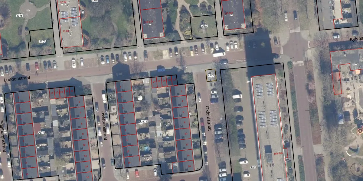 Het perceel waarop Oxfordstraat 2 staat heeft een oppervlakte van 2410 m². Dit is een zeer groot perceel. De perceeloppervlakte wordt geregistreerd door het Kadaster. Gedetailleerde informatie over de maten van dit perceel kunt u vinden in het rapport Kadastrale kaart met maatvoering van Oxfordstraat 2.