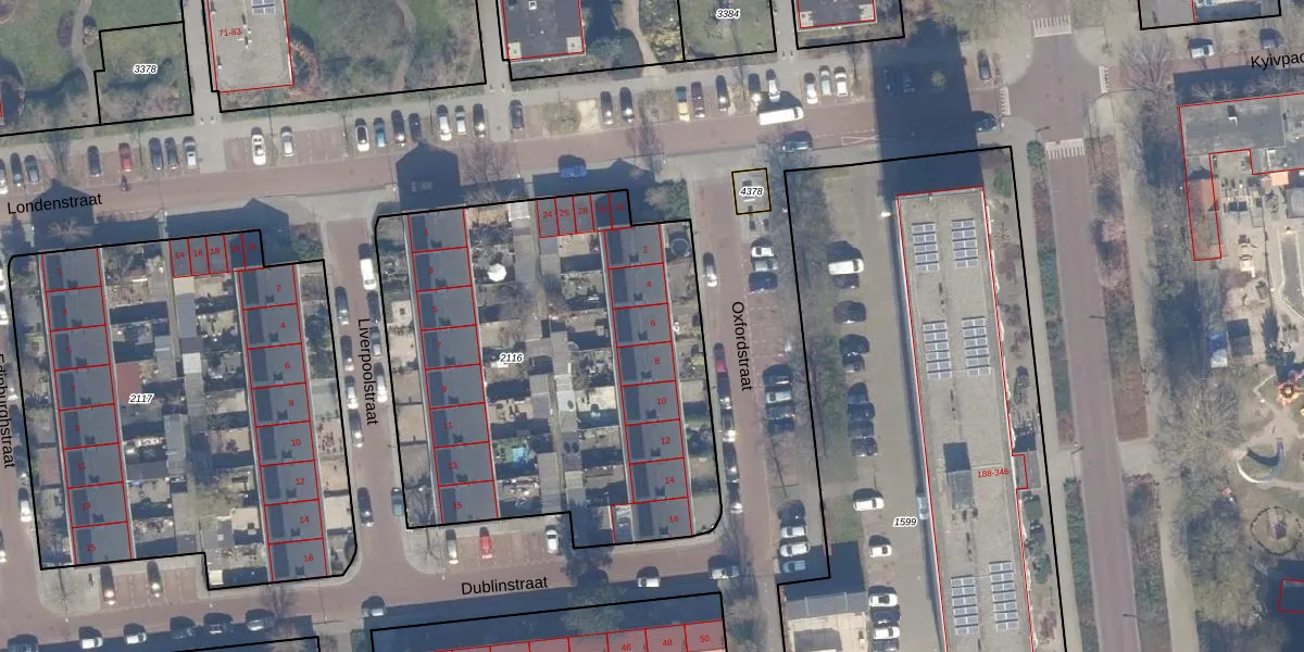 Het perceel waarop Oxfordstraat 6 staat heeft een oppervlakte van 2410 m². Dit is een zeer groot perceel. De perceeloppervlakte wordt geregistreerd door het Kadaster. Gedetailleerde informatie over de maten van dit perceel kunt u vinden in het rapport Kadastrale kaart met maatvoering van Oxfordstraat 6.
