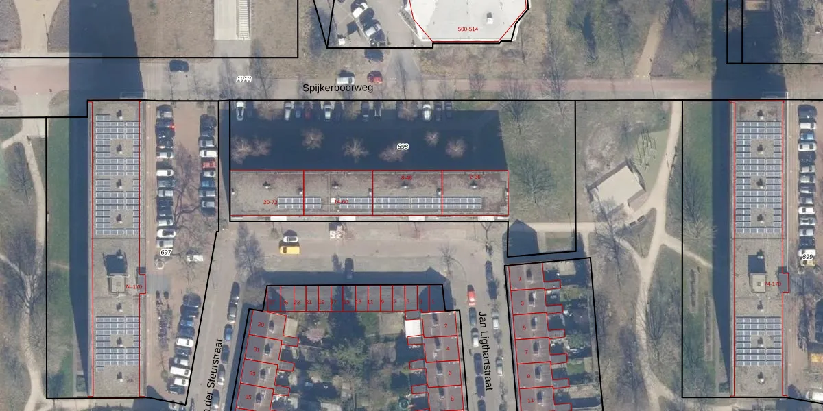 Het perceel waarop het adres ligt is HLM02-X-698. De afkorting 'HLM02' staat voor kadastrale gemeente Haarlem. De oppervlakte van het perceel is 2590 m². Dat is groter dan gemiddeld in Haarlem, waar de gemiddelde perceeloppervlakte op 1125,79 m² ligt. De grootste perceeloppervlakte in de kadastrale gemeente is 46,4 ha. De kleinste oppervlakte bedraagt 0 m². Er zijn 36 adressen aanwezig op het perceel. De huidige grenzen van het perceel zijn digitaal in de Basisregistratie Kadaster (BRK) geregistreerd op 08-10-2001.