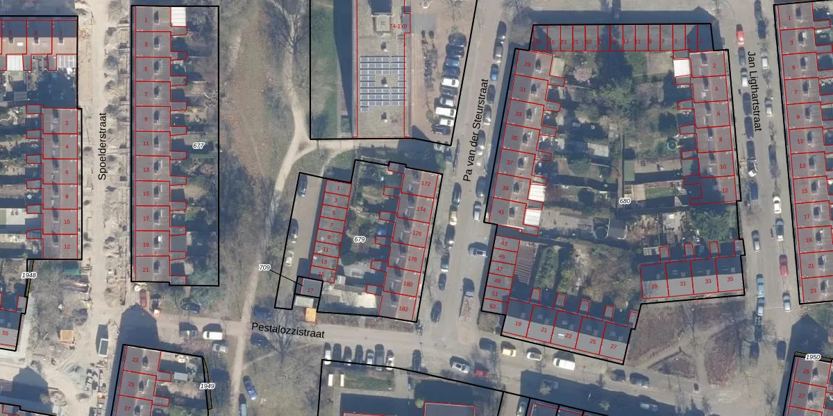 Pa van der Steurstraat 174 is gelegen op kadastraal perceel HLM02X679. Deze kadastrale aanduiding is uniek en wordt gebruikt door het Kadaster om eigendomsrechten en andere zakelijke rechten vast te leggen. Het perceel maakt onderdeel uit van de kadastrale gemeente Haarlem.