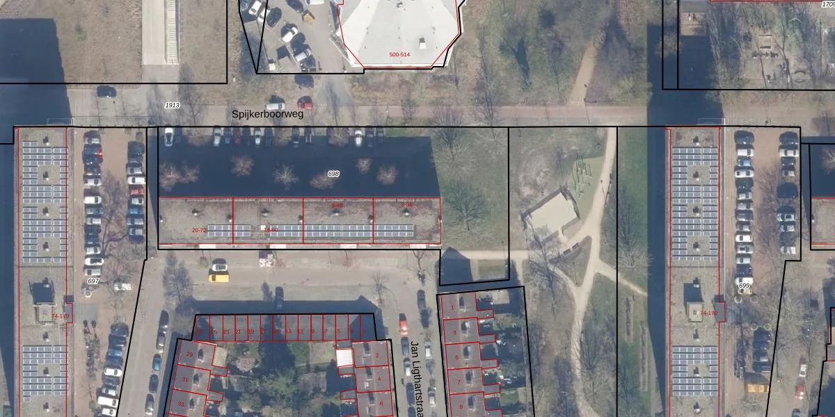 Het perceel waarop het adres ligt is HLM02-X-698. De afkorting 'HLM02' staat voor kadastrale gemeente Haarlem. De oppervlakte van het perceel is 2590 m². Dat is groter dan gemiddeld in Haarlem, waar de gemiddelde perceeloppervlakte op 1125,79 m² ligt. De grootste perceeloppervlakte in de kadastrale gemeente is 46,4 ha. De kleinste oppervlakte bedraagt 0 m². Op het perceel liggen in totaal 36 adressen. In de Basisregistratie Kadaster (BRK) werden de grenzen van het perceel geregistreerd op 08-10-2001.