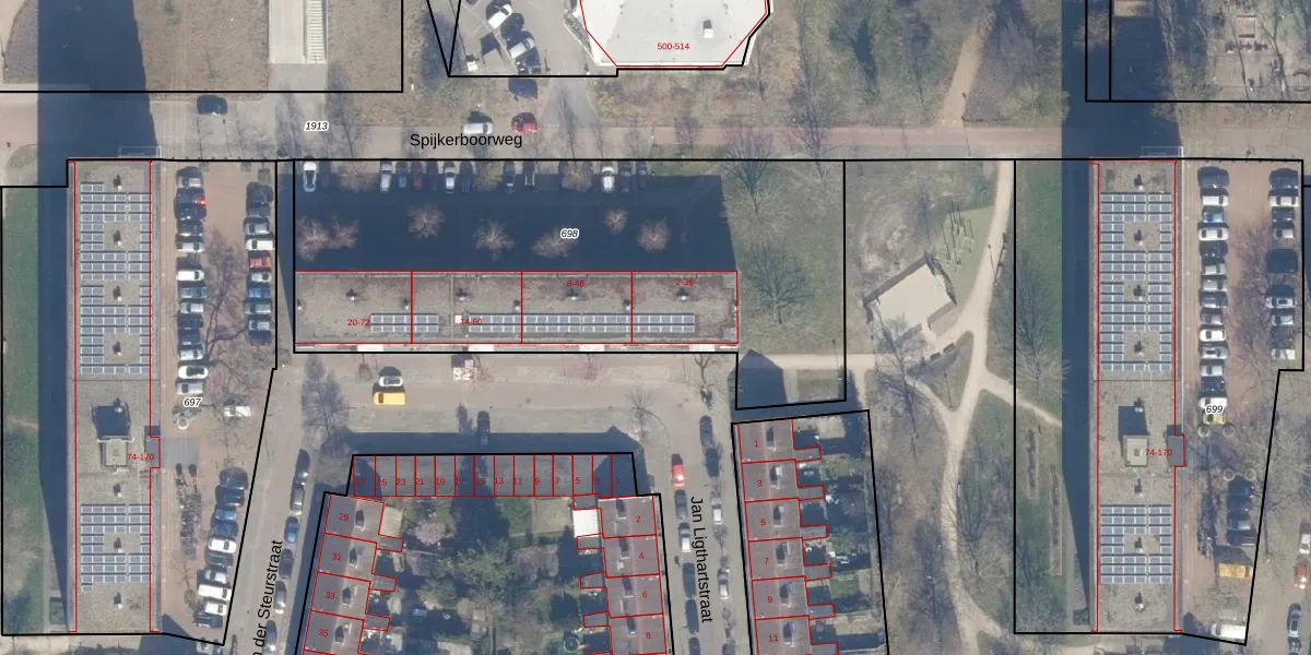 Het perceel waarop het adres ligt is HLM02-X-698. De afkorting 'HLM02' staat voor kadastrale gemeente Haarlem. De oppervlakte van het perceel is 2590 m². Dat is groter dan gemiddeld in Haarlem, waar de gemiddelde perceeloppervlakte op 1125,79 m² ligt. De grootste perceeloppervlakte in de kadastrale gemeente is 46,4 ha. De kleinste oppervlakte bedraagt 0 m². Er zijn 36 adressen aanwezig op het perceel. In de Basisregistratie Kadaster (BRK) werden de grenzen van het perceel geregistreerd op 08-10-2001.