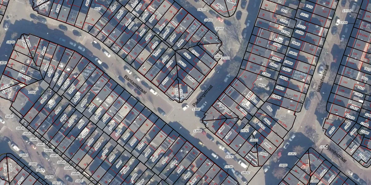 Het perceel waarop Padangstraat 1 staat heeft een oppervlakte van 57 m². Dit is een klein perceel. De perceeloppervlakte wordt geregistreerd door het Kadaster. Gedetailleerde informatie over de maten van dit perceel kunt u vinden in het rapport Kadastrale kaart met maatvoering van Padangstraat 1.