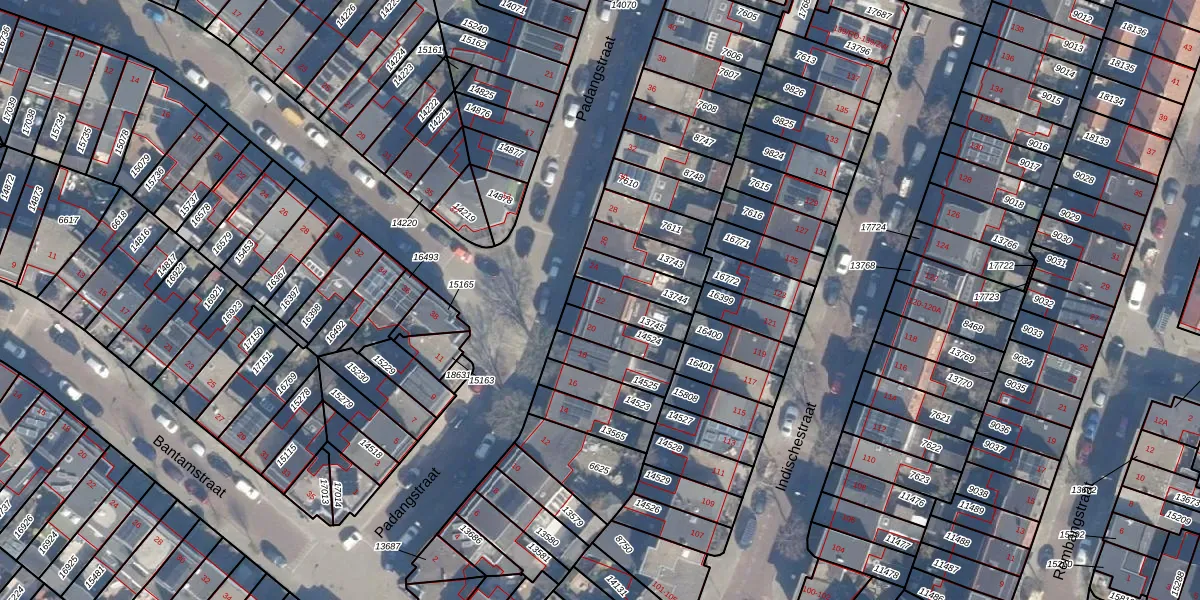 Het perceel waarop Padangstraat 22 staat heeft een oppervlakte van 102 m². Dit is een middelgroot perceel. De perceeloppervlakte wordt geregistreerd door het Kadaster. Gedetailleerde informatie over de maten van dit perceel kunt u vinden in het rapport Kadastrale kaart met maatvoering van Padangstraat 22.