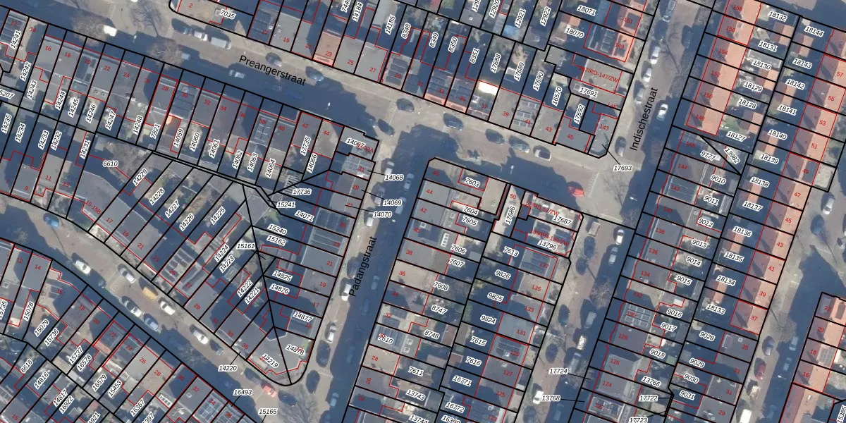 Het perceel waarop Padangstraat 42 staat heeft een oppervlakte van 91 m². Dit is een klein perceel. De perceeloppervlakte wordt geregistreerd door het Kadaster. Gedetailleerde informatie over de maten van dit perceel kunt u vinden in het rapport Kadastrale kaart met maatvoering van Padangstraat 42.