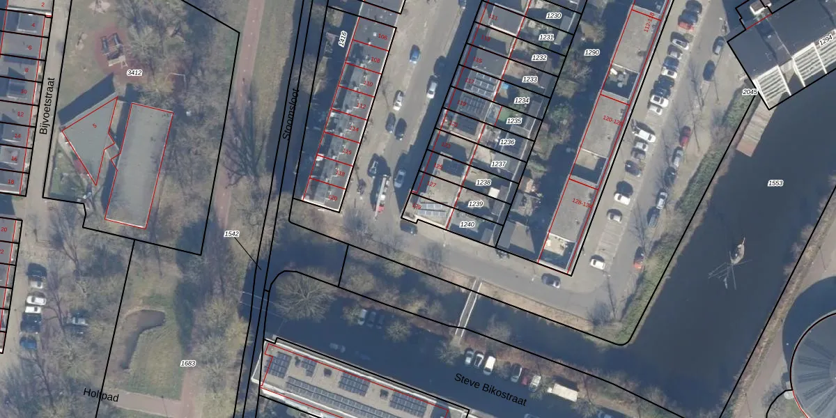 Gebruik de zoekbalk of klik op een perceel voor informatie over de adressen binnen dit perceel.