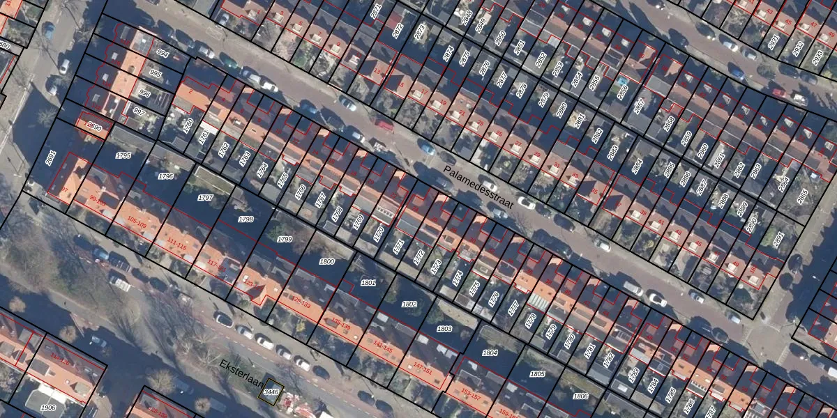 Gebruik de zoekbalk of klik op een perceel voor informatie over de adressen binnen dit perceel.
