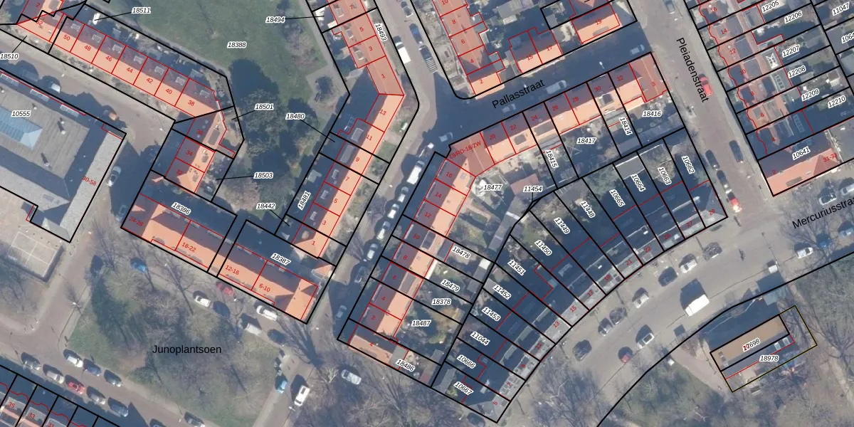 Pallasstraat 12 is gelegen op kadastraal perceel STN01B18477. Deze kadastrale aanduiding is uniek en wordt gebruikt door het Kadaster om eigendomsrechten en andere zakelijke rechten vast te leggen. Het perceel maakt onderdeel uit van de kadastrale gemeente Schoten.