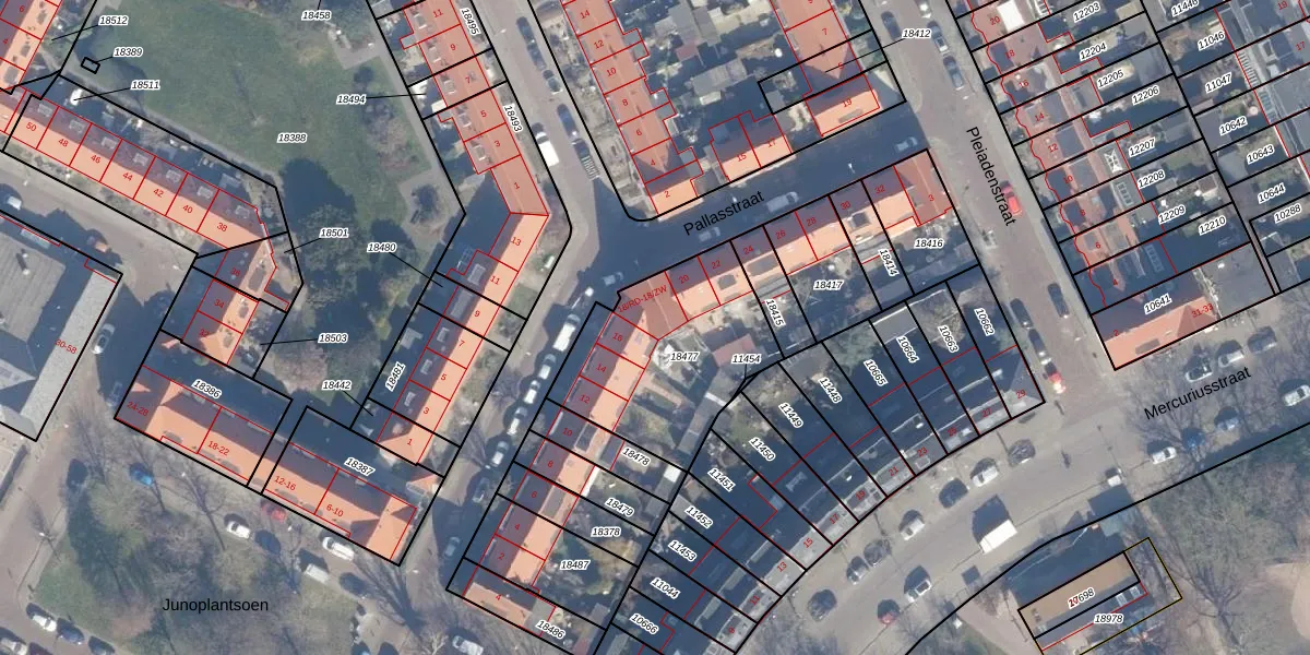 Pallasstraat 18-RD is gelegen op kadastraal perceel STN01B18477. Deze kadastrale aanduiding is uniek en wordt gebruikt door het Kadaster om eigendomsrechten en andere zakelijke rechten vast te leggen. Het perceel maakt onderdeel uit van de kadastrale gemeente Schoten.