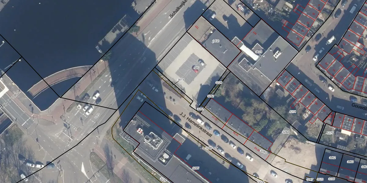 Het adres is gelegen op perceel 565 in de sectie Q en de kadastrale gemeente Haarlem. De kadastrale aanduiding is aldus HLM02-Q-565. Het perceel is kleiner dan gemiddeld in Haarlem. Het perceel is 830 m² groot, terwijl het gemiddelde ligt op 1123,97 m². De grootste perceeloppervlakte in de kadastrale gemeente is 46,4 ha. De kleinste oppervlakte bedraagt 0 m². Op het perceel zijn 24 adressen aanwezig. In de Basisregistratie Kadaster (BRK) werden de grenzen van het perceel geregistreerd op 20-12-2022.