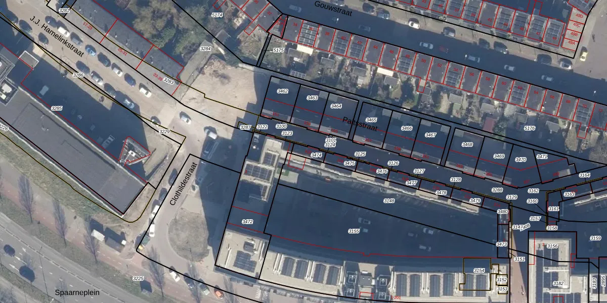 Het perceel waarop Paltsstraat 102 staat heeft een oppervlakte van 41 m². Dit is een klein perceel. De perceeloppervlakte wordt geregistreerd door het Kadaster. Gedetailleerde informatie over de maten van dit perceel kunt u vinden in het rapport Kadastrale kaart met maatvoering van Paltsstraat 102.