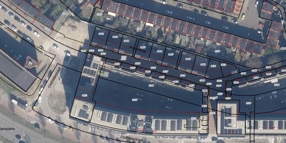 Paltsstraat 106 is gelegen op kadastraal perceel HLM02Q3476. Deze kadastrale aanduiding is uniek en wordt gebruikt door het Kadaster om eigendomsrechten en andere zakelijke rechten vast te leggen. Het perceel maakt onderdeel uit van de kadastrale gemeente Haarlem.