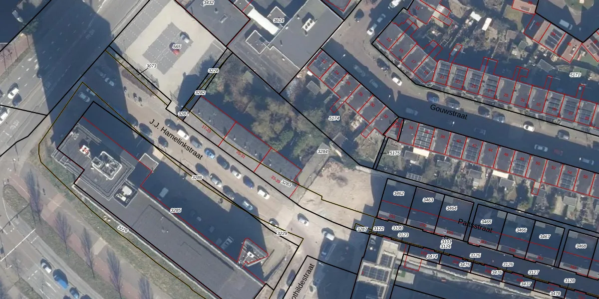 Het perceel waarop Paltsstraat 15 staat heeft een oppervlakte van 1632 m². Dit is een zeer groot perceel. De perceeloppervlakte wordt geregistreerd door het Kadaster. Gedetailleerde informatie over de maten van dit perceel kunt u vinden in het rapport Kadastrale kaart met maatvoering van Paltsstraat 15.