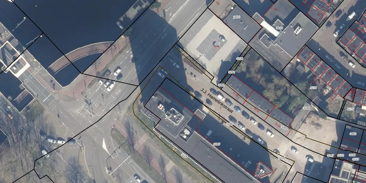 Het adres is gelegen op perceel 3285 in de sectie Q en de kadastrale gemeente Haarlem. De kadastrale aanduiding is aldus HLM02-Q-3285. De oppervlakte van het perceel is 2207 m². Dat is groter dan gemiddeld in Haarlem, waar de gemiddelde perceeloppervlakte op 1124,37 m² ligt. De grootste perceeloppervlakte in de kadastrale gemeente is 46,4 ha. De kleinste oppervlakte bedraagt 0 m². Op het perceel liggen in totaal 191 adressen. De laatste wijziging in het de Basisregistratie Kadaster (BRK) was op 20-10-2023.