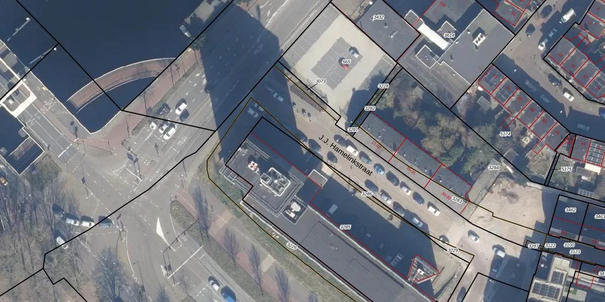 Het adres is gelegen op perceel 3285 in de sectie Q en de kadastrale gemeente Haarlem. De kadastrale aanduiding is aldus HLM02-Q-3285. De oppervlakte van het perceel is 2207 m². Dat is groter dan gemiddeld in Haarlem, waar de gemiddelde perceeloppervlakte op 1123,97 m² ligt. De grootste perceeloppervlakte in de kadastrale gemeente is 46,4 ha. De kleinste oppervlakte bedraagt 0 m². Er zijn 191 adressen aanwezig op het perceel. De huidige grenzen van het perceel zijn digitaal in de Basisregistratie Kadaster (BRK) geregistreerd op 20-10-2023.