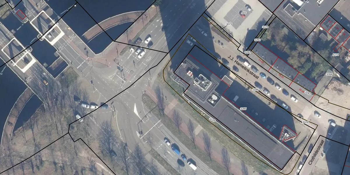 Het adres is gelegen op perceel 3226 in de sectie Q en de kadastrale gemeente Haarlem. De kadastrale aanduiding is aldus HLM02-Q-3226. Het perceel is 587 m² groot. Dat is kleiner dan de gemiddelde perceeloppervlakte in Haarlem, dat op 1125,45 m² ligt. Het kleinste perceel in de kadastrale gemeente is 0 m² groot. De grootste perceeloppervlakte is 46,4 ha. Op het perceel zijn 34 adressen aanwezig. De laatste wijziging in het de Basisregistratie Kadaster (BRK) was op 20-12-2022.
