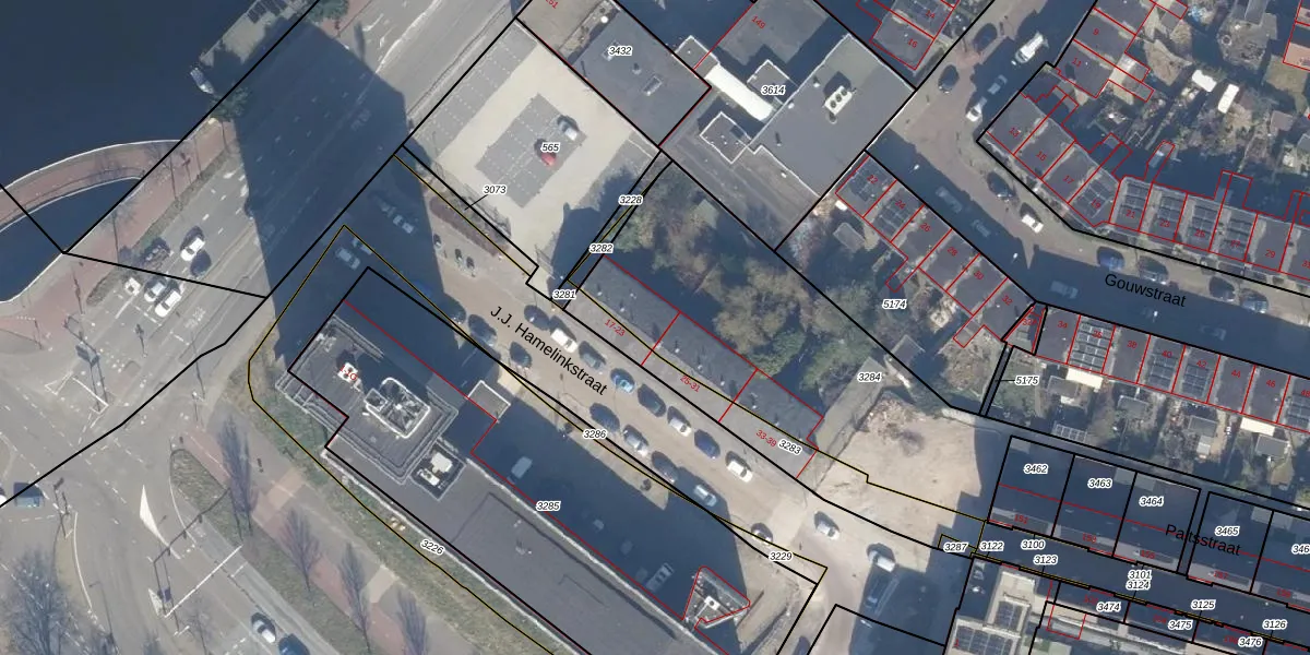 Het adres is gelegen op perceel 3284 in de sectie Q en de kadastrale gemeente Haarlem. De kadastrale aanduiding is aldus HLM02-Q-3284. De oppervlakte van het perceel is 1632 m². Dat is groter dan gemiddeld in Haarlem, waar de gemiddelde perceeloppervlakte op 1123,97 m² ligt. Het kleinste perceel in de kadastrale gemeente is 0 m² groot. De grootste perceeloppervlakte is 46,4 ha. Op het perceel zijn 70 adressen aanwezig. De laatste wijziging in het de Basisregistratie Kadaster (BRK) was op 13-01-2026.