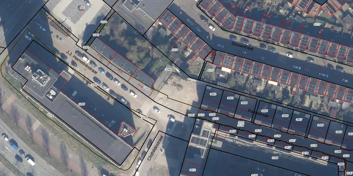Het adres is gelegen op perceel 3284 in de sectie Q en de kadastrale gemeente Haarlem. De kadastrale aanduiding is aldus HLM02-Q-3284. De oppervlakte van het perceel is 1632 m². Dat is groter dan gemiddeld in Haarlem, waar de gemiddelde perceeloppervlakte op 1123,97 m² ligt. Het kleinste perceel in de kadastrale gemeente is 0 m² groot. De grootste perceeloppervlakte is 46,4 ha. Op het perceel zijn 70 adressen aanwezig. In de Basisregistratie Kadaster (BRK) werden de grenzen van het perceel geregistreerd op 13-01-2026.
