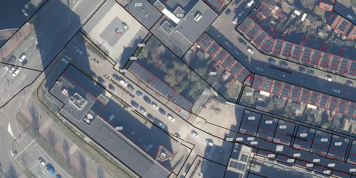 Het adres is gelegen op perceel 3284 in de sectie Q en de kadastrale gemeente Haarlem. De kadastrale aanduiding is aldus HLM02-Q-3284. De oppervlakte van het perceel is 1632 m². Dat is groter dan gemiddeld in Haarlem, waar de gemiddelde perceeloppervlakte op 1123,97 m² ligt. Het kleinste perceel in de kadastrale gemeente is 0 m² groot. De grootste perceeloppervlakte is 46,4 ha. Op het perceel liggen in totaal 70 adressen. De huidige grenzen van het perceel zijn digitaal in de Basisregistratie Kadaster (BRK) geregistreerd op 13-01-2026.