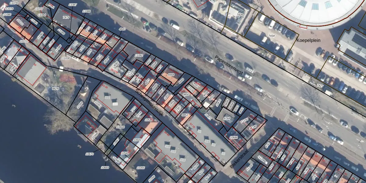 Het perceel waarop Papentorenvest 26-A staat heeft een oppervlakte van 65 m². Dit is een klein perceel. De perceeloppervlakte wordt geregistreerd door het Kadaster. Gedetailleerde informatie over de maten van dit perceel kunt u vinden in het rapport Kadastrale kaart met maatvoering van Papentorenvest 26-A.