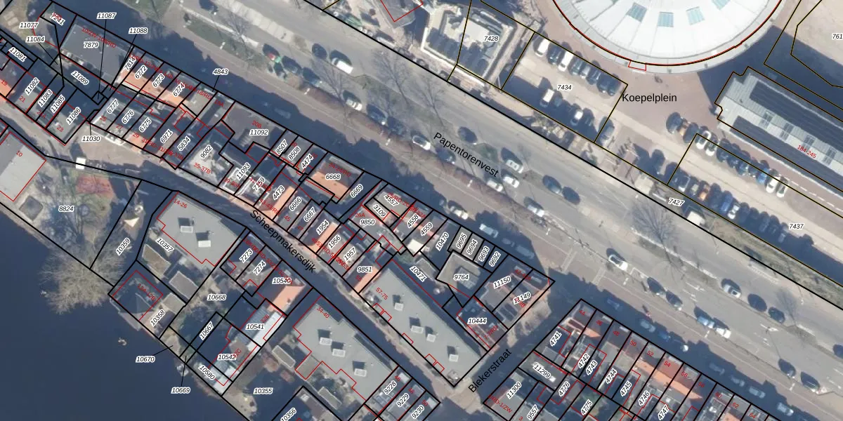 Het perceel waarop Papentorenvest 30 staat heeft een oppervlakte van 42 m². Dit is een klein perceel. De perceeloppervlakte wordt geregistreerd door het Kadaster. Gedetailleerde informatie over de maten van dit perceel kunt u vinden in het rapport Kadastrale kaart met maatvoering van Papentorenvest 30.