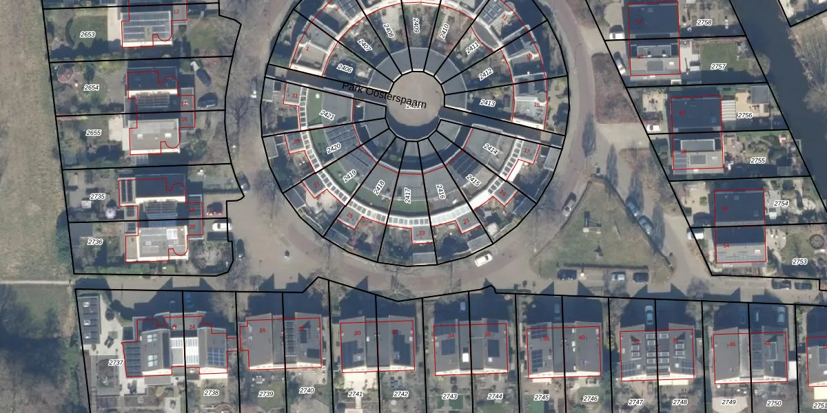 Het perceel waarop Park Oosterspaarn 23 staat heeft een oppervlakte van 259 m². Dit is een middelgroot perceel. De perceeloppervlakte wordt geregistreerd door het Kadaster. Gedetailleerde informatie over de maten van dit perceel kunt u vinden in het rapport Kadastrale kaart met maatvoering van Park Oosterspaarn 23.
