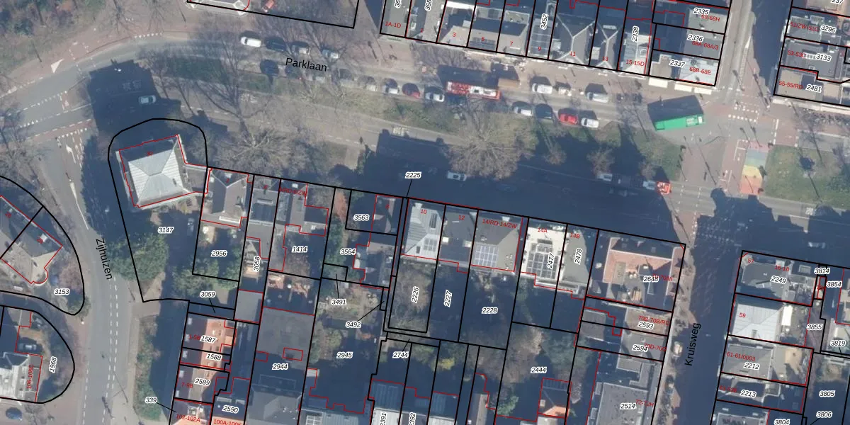 Parklaan 10 is gelegen op kadastraal perceel HLM01B2226. Deze kadastrale aanduiding is uniek en wordt gebruikt door het Kadaster om eigendomsrechten en andere zakelijke rechten vast te leggen. Het perceel maakt onderdeel uit van de kadastrale gemeente Haarlem.