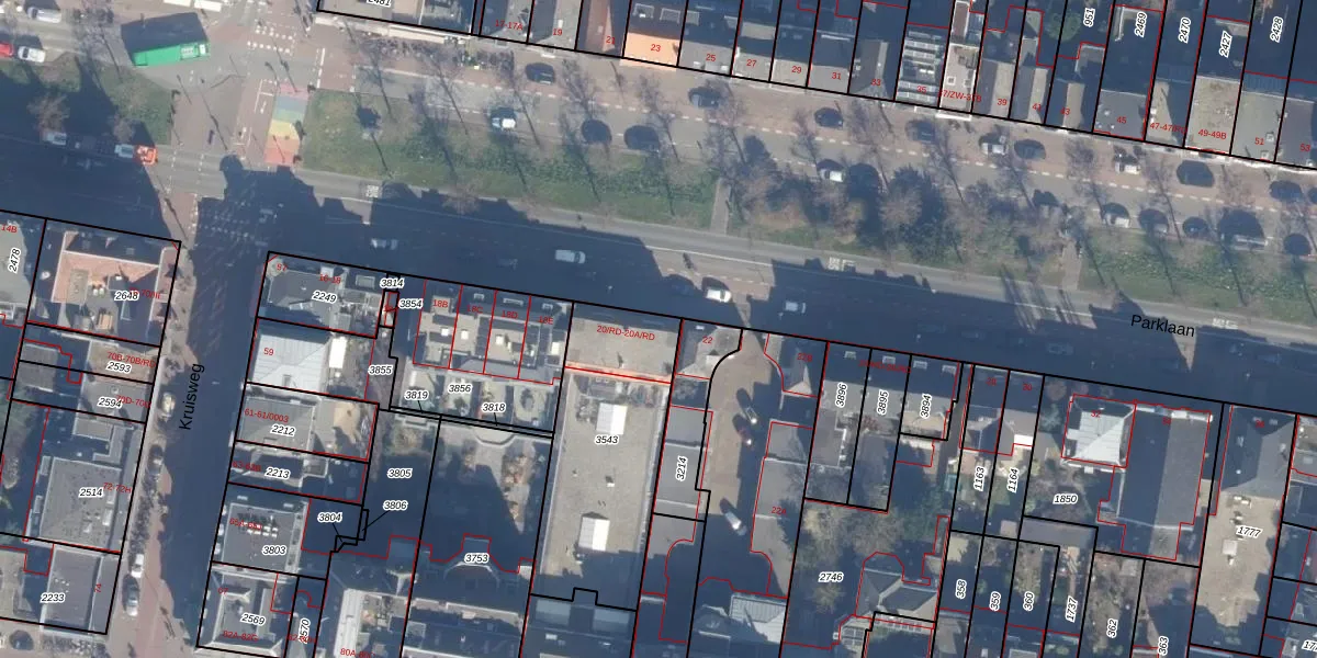 Parklaan 20-A-RD is gelegen op kadastraal perceel HLM01B3543. Deze kadastrale aanduiding is uniek en wordt gebruikt door het Kadaster om eigendomsrechten en andere zakelijke rechten vast te leggen. Het perceel maakt onderdeel uit van de kadastrale gemeente Haarlem.