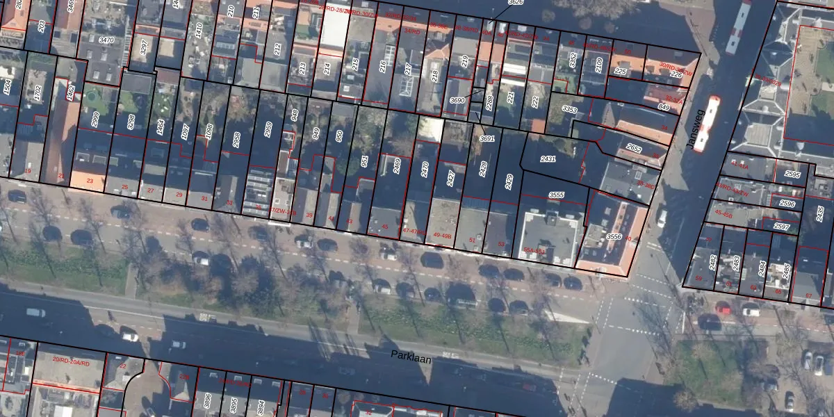 Parklaan 47-RD is gelegen op kadastraal perceel HLM01B2470. Deze kadastrale aanduiding is uniek en wordt gebruikt door het Kadaster om eigendomsrechten en andere zakelijke rechten vast te leggen. Het perceel maakt onderdeel uit van de kadastrale gemeente Haarlem.