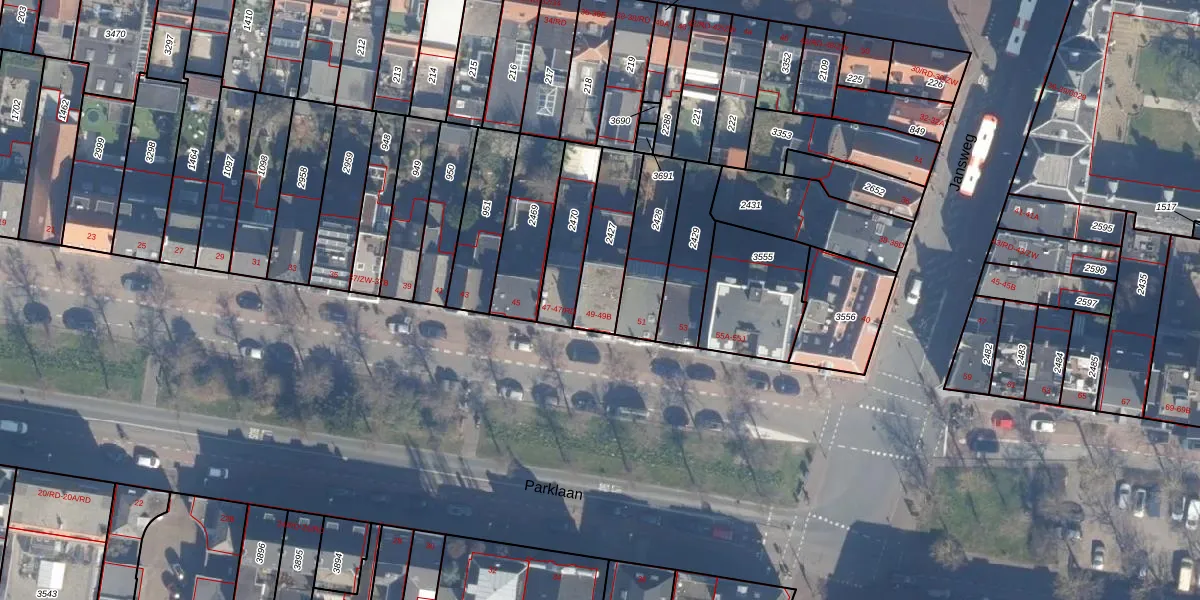 Parklaan 49-A is gelegen op kadastraal perceel HLM01B2427. Deze kadastrale aanduiding is uniek en wordt gebruikt door het Kadaster om eigendomsrechten en andere zakelijke rechten vast te leggen. Het perceel maakt onderdeel uit van de kadastrale gemeente Haarlem.